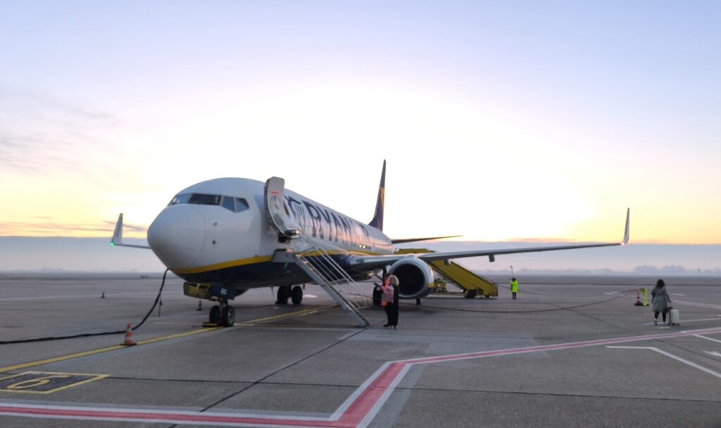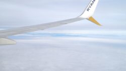 Ryanair nás rozsadil ako už býva pravidlom. Let bol plný odhadom na 80% a tak sa Katke podarilo sedieť spolu s deťmi v prednej časti lietadla. Ja som sedel pri okne v 12. rade.