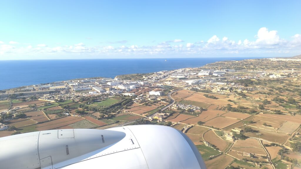 Už nad Sicíliou sme začali pomaly klesať k pristátiu a po necelých dvoch hodinách letu sme dosadli na slnkom zaliatu Maltu. Aký to rozdiel oproti ránu keď sme odlietali 🙂