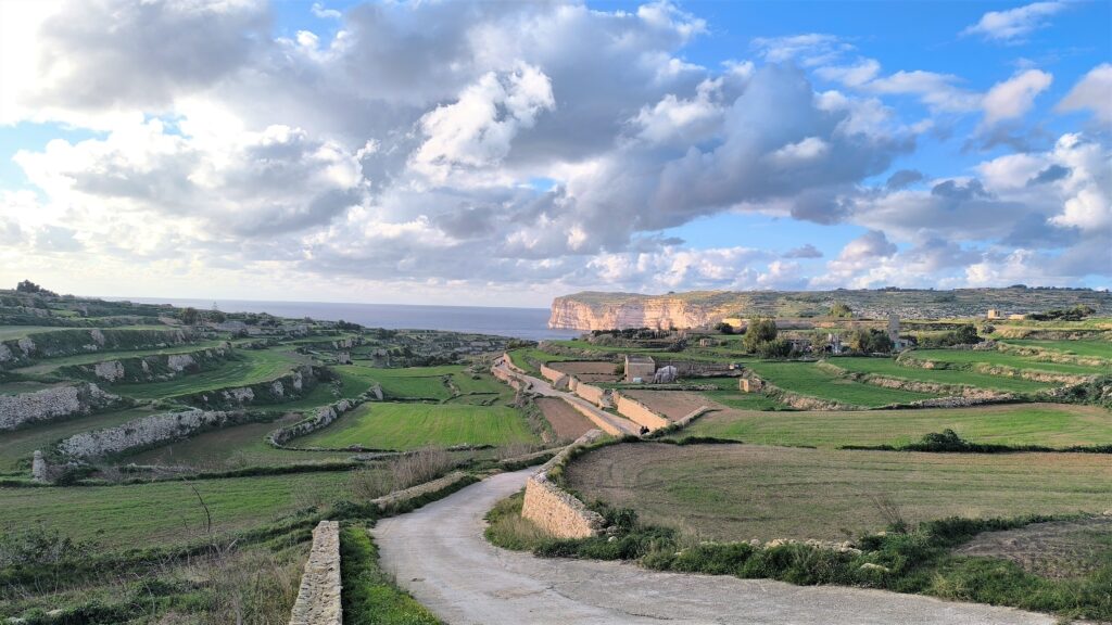 K vyhliadke na útesy Dingli vedie hlavná cesta z hornej časti, ale nás navigácia ťahala zo spodnej časti totálne úzkymi cestami.
