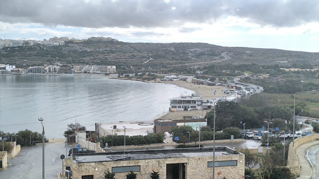 Cestou do Valletty sme míňali jednu z najznámejších a najväčšiu pláž na Malte – Għadira Bay.