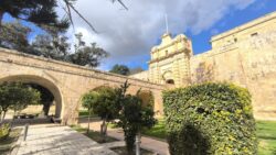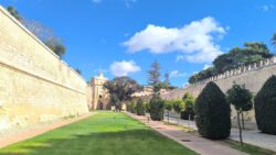Do Mdiny sme vošli po kamennom moste cez hlavnú bránu, vyšli sme z bočnej strany priamo do obranného valu, prešli sa ním a na opačnej strane po schodoch vybehli v Rabate.