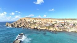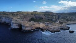 Navigácia nás však viedla ešte horšími cestami ako na Malte k tým prvým útesom a to malo za následok, že sme sa na to po nejakom čase vykašlali. Auto som odparkoval na mieste, kde bolo trochu viac miesta a útesy som odfotil aspoň z diaľky. Stále dosť fúkalo, vytiahol som však dron a riskol pár záberov zo vzduchu. Dron mal čo robiť, ale nakoniec pristál šťastlivo 🙂