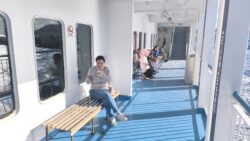 Sadli sme do auta a krížom cez ostrov sa presunuli k trajektu. Na okienku sme zaplatili a postavili sa do organizovanej fronty. Trajekt bol pristavený a po asi desiatich minútach nás začali postupne púšťať.