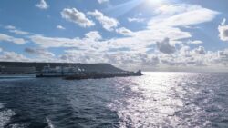 Z Paradise Bay to bolo do prístavu pár minút. Mali sme šťastie, vôbec sme nemuseli čakať a rovno sme sa s autom nalodili do trajektu.