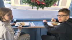 V stánku si Tomi dal horúcu šišku s džemom a Tánička pistáciový croissant a vrátili sme sa k autu.