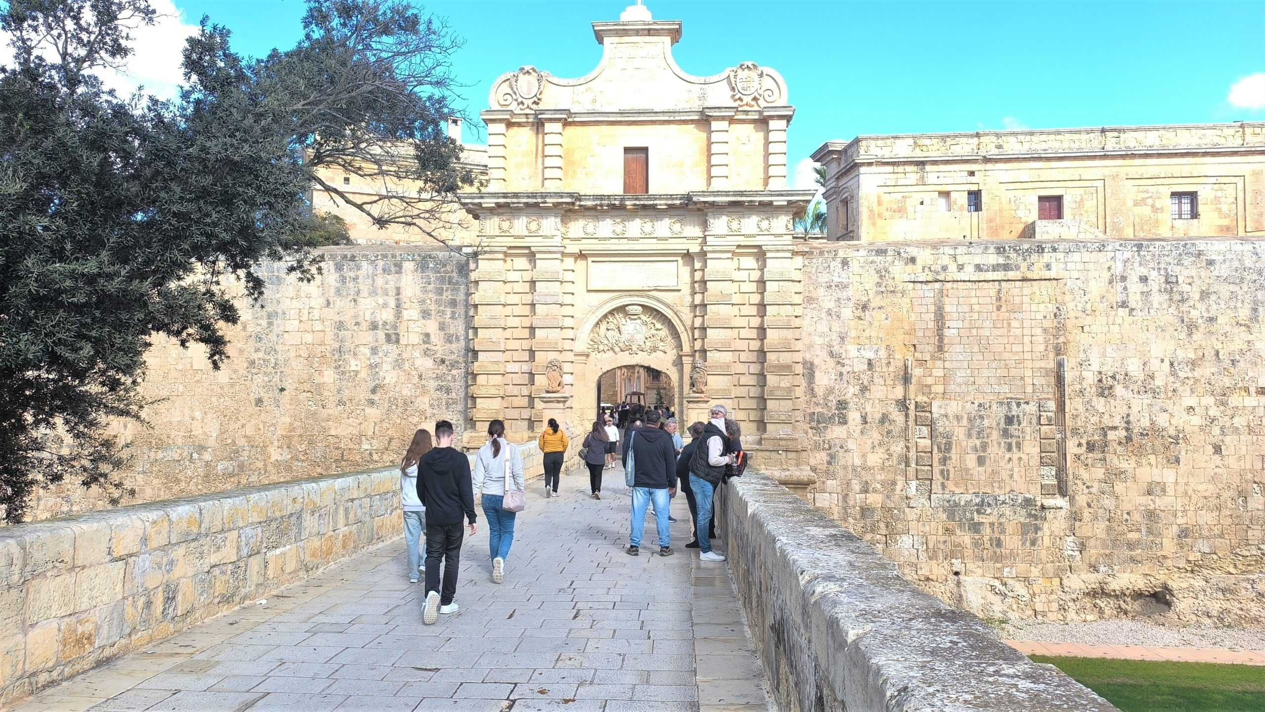 Do Mdiny sme vošli po kamennom moste cez hlavnú bránu, vyšli sme z bočnej strany priamo do obranného valu, prešli sa ním a na opačnej strane po schodoch vybehli v Rabate.