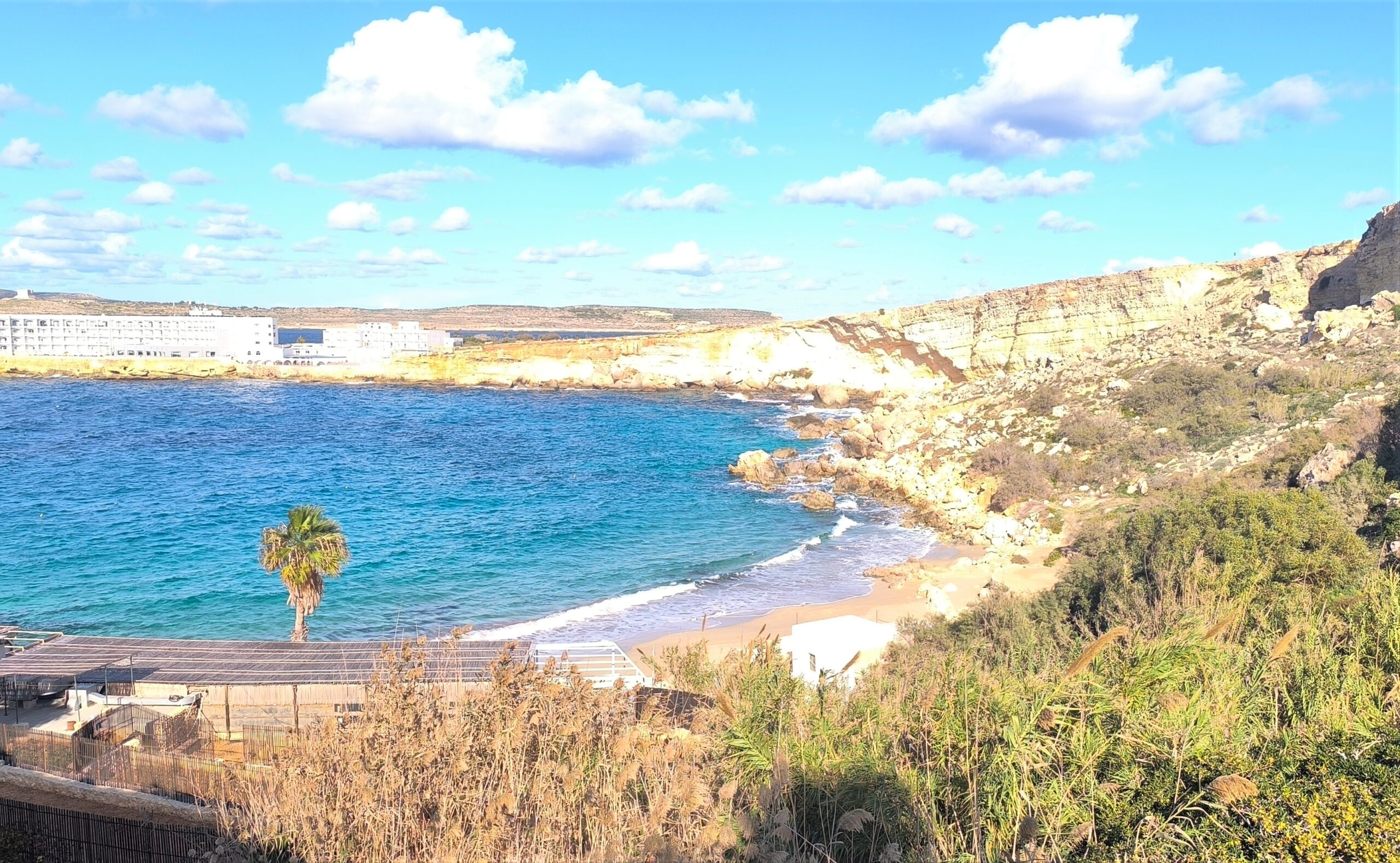 Cestou do Valletty sme míňali jednu z najznámejších a najväčšiu pláž na Malte – Għadira Bay.
