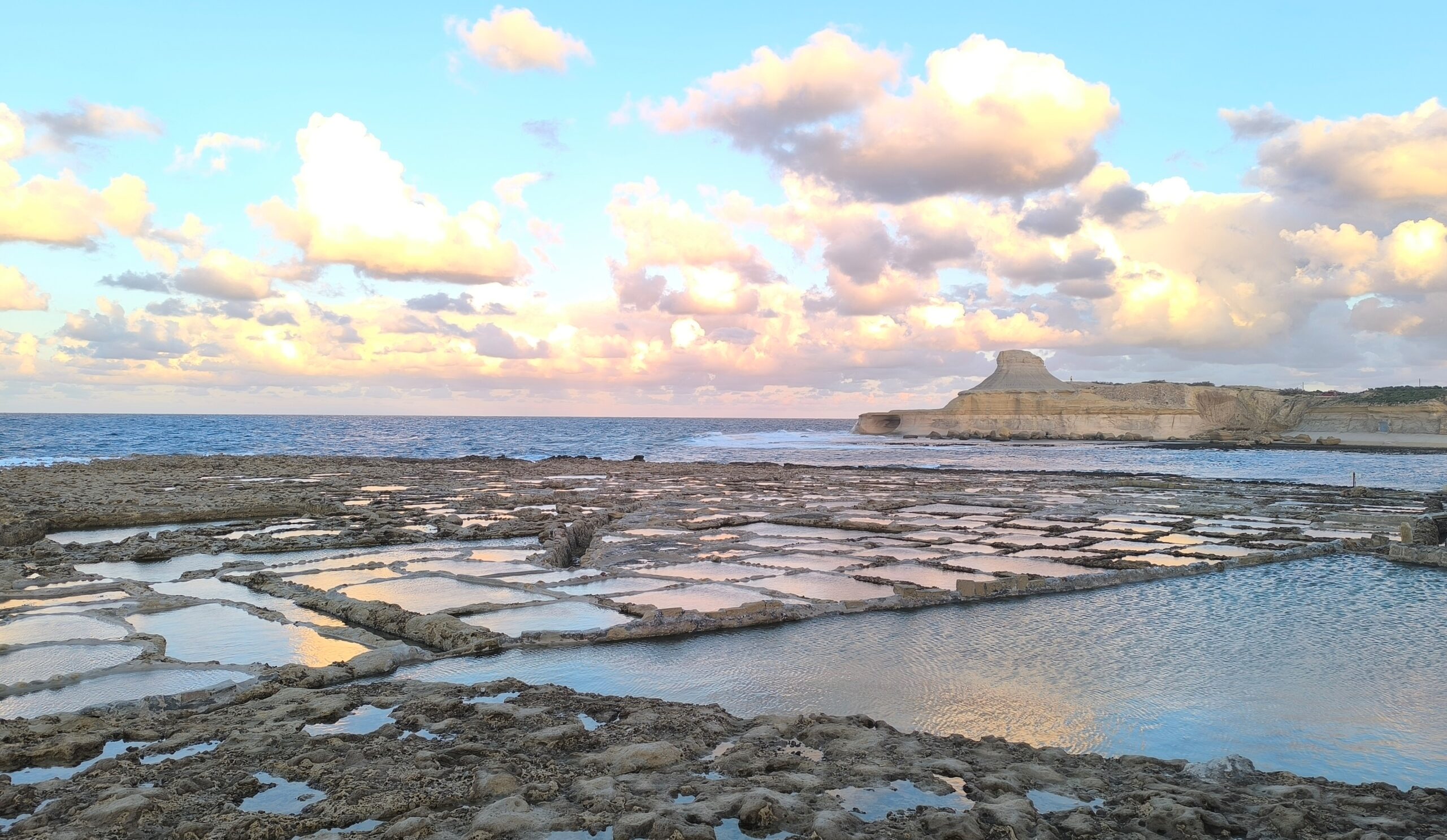 Marsalforn je známy tým, že popri mori sú vybudované a stále v prevádzke súkromné odsoľovacie panvy. Keby tak nefúkalo, bola by to veľmi príjemná prechádzka.