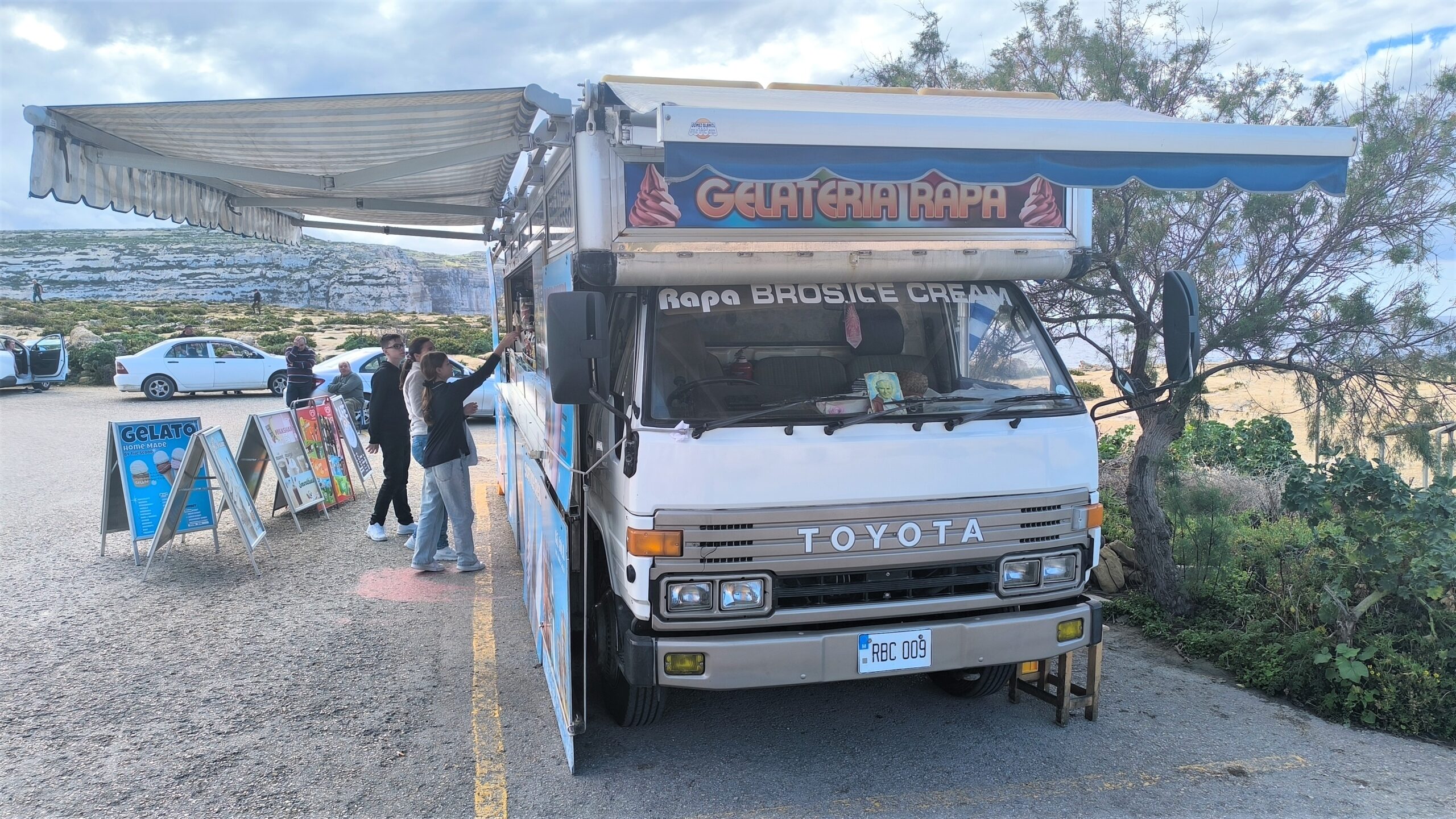 Hore na parkovisku stála štýlová stará Toyota – pojazdná zmrzlináreň. Keďže ja som si doprial posledné kúpanie, deťom sme dopriali poslednú zmrzlinu tohto roka.
