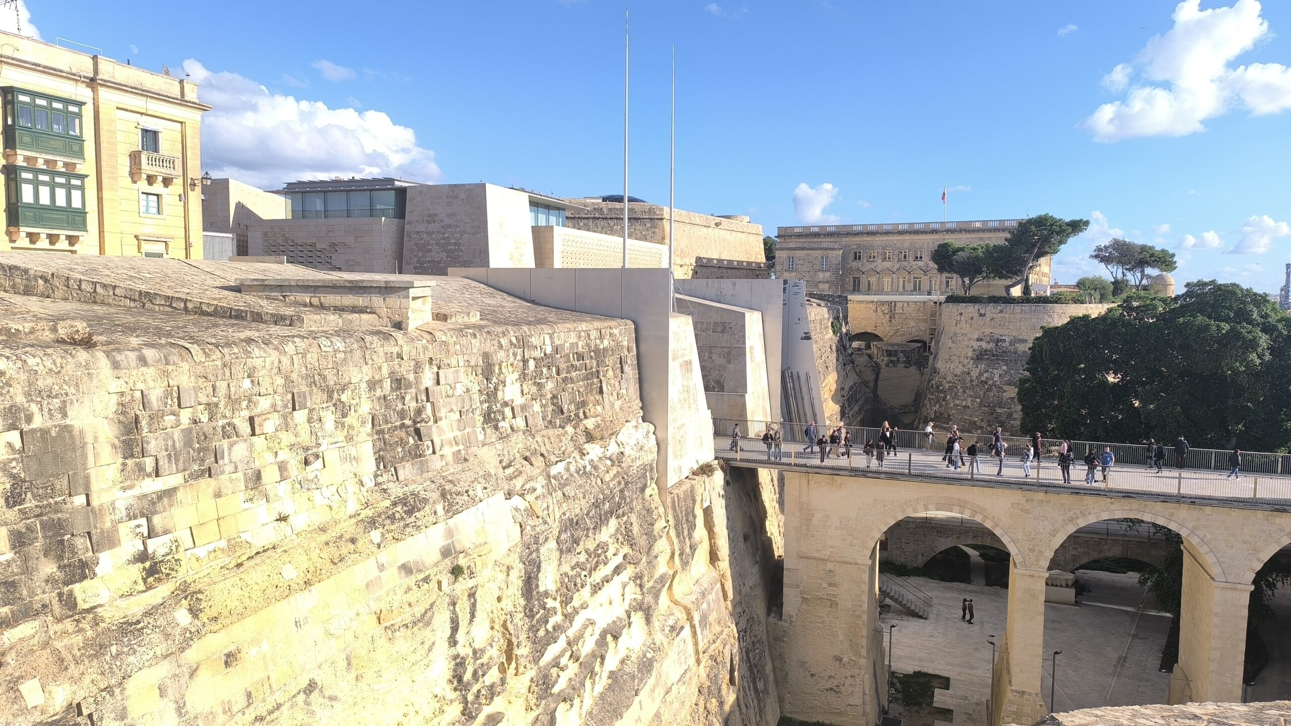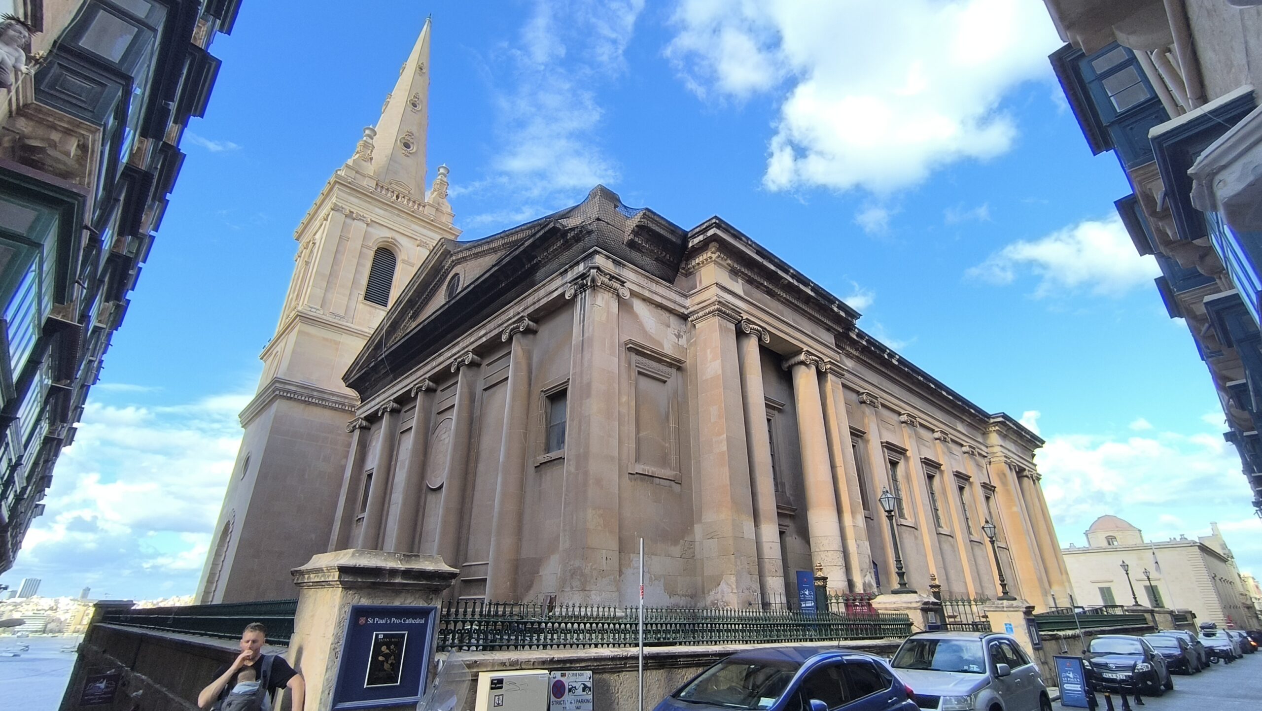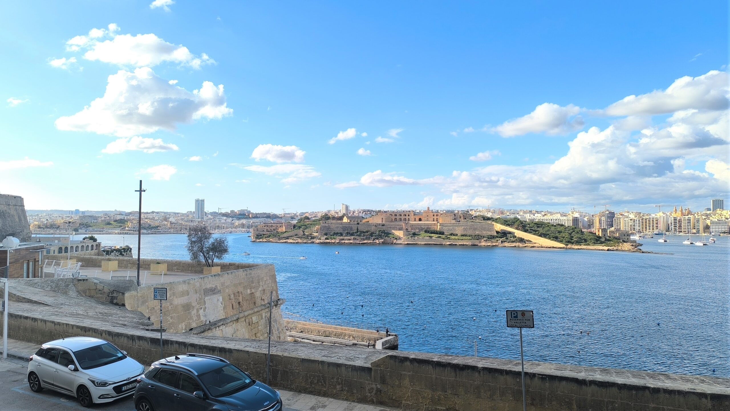 Keď sme prešli okolo budovy súdu, pomaly sme to stočili kolmo na ulicu Republiky ku Katedrále sv. Pavla a poza ňu sme plynulo došli k zálivu. Otvoril sa nám výhľad na pevnosť Manoel na rovnomennom ostrove a susedné mestá Sliema a Gżira. Viacmenej popri zálive sme sa vracali späť a tam, kde sme prechádzku centrom Valletty začali, sme ju aj skončili – pri schodoch vedľa budovy parlamentu.